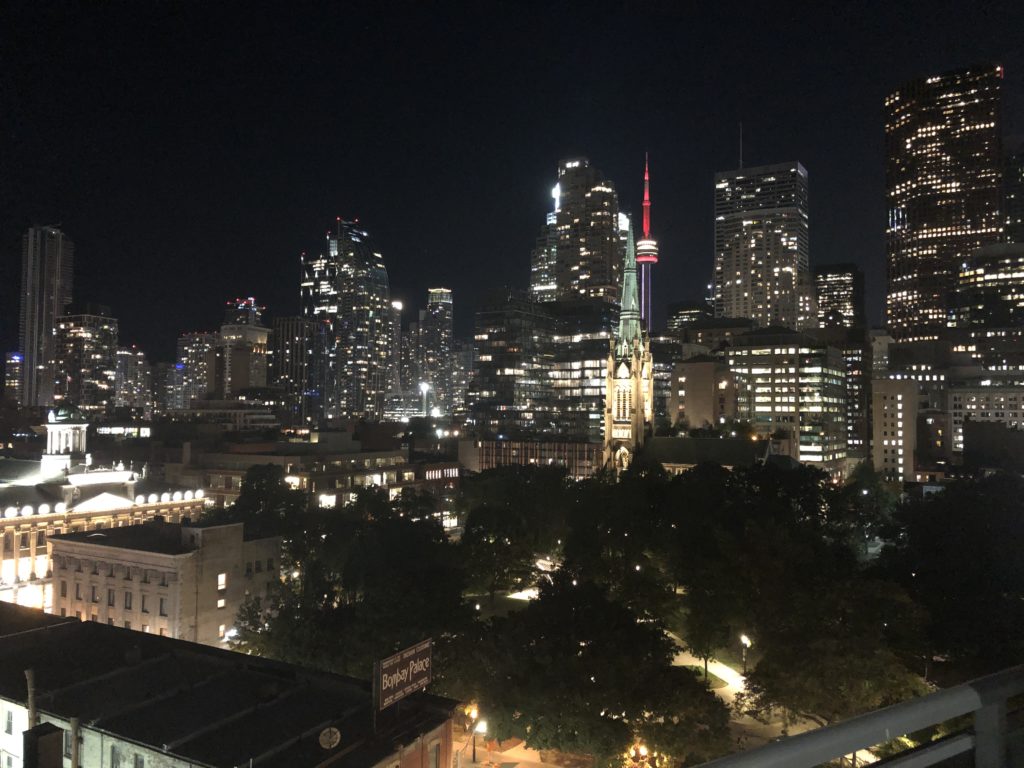 Am Sonntagabend waren wir bei Freunden zu einem Dachterrassen-BBQ eingeladen. Wir steuerten Salat und ein paar Getränke bei, Grillgut und weitere Getränke kamen von den anderen. Es war ein wunderbarer Abend, wir hatten viel Spaß und einen tollen Blick. Ein Nachbar baute sein DJ-Set auf uns so hatten wir noch eine schöne Hintergrundberieselung. King kannte ich als einzigen Gast noch von meinem letzten Besuch, die anderen drei lernte ich im Verlauf des Abends kennen. Nicks Wurzeln liegen in Montréal, er kam zu einem mehrmonatigen Lehrgang nach Toronto, weil er gerne umschulen wollte. Er schreibt an einem Buch und wir hörten ihm alle gespannt zu, wie sich die Geschichte eines:r nicht näher benannten Held:in entwickelte. Am späteren Abend zogen wir in die Wohnung um und schauten noch ein wenig RuPaul’s Drag Race in der Mediathek, bevor alle satt und zufrieden, aber auch ein wenig schläfrig nach Hause gingen. Zuvor gab uns Nick seine Nummer und wir durften ihn kontaktieren für Tipps rund um Montréal, denn dort wollten wir für ein paar Tage hin.