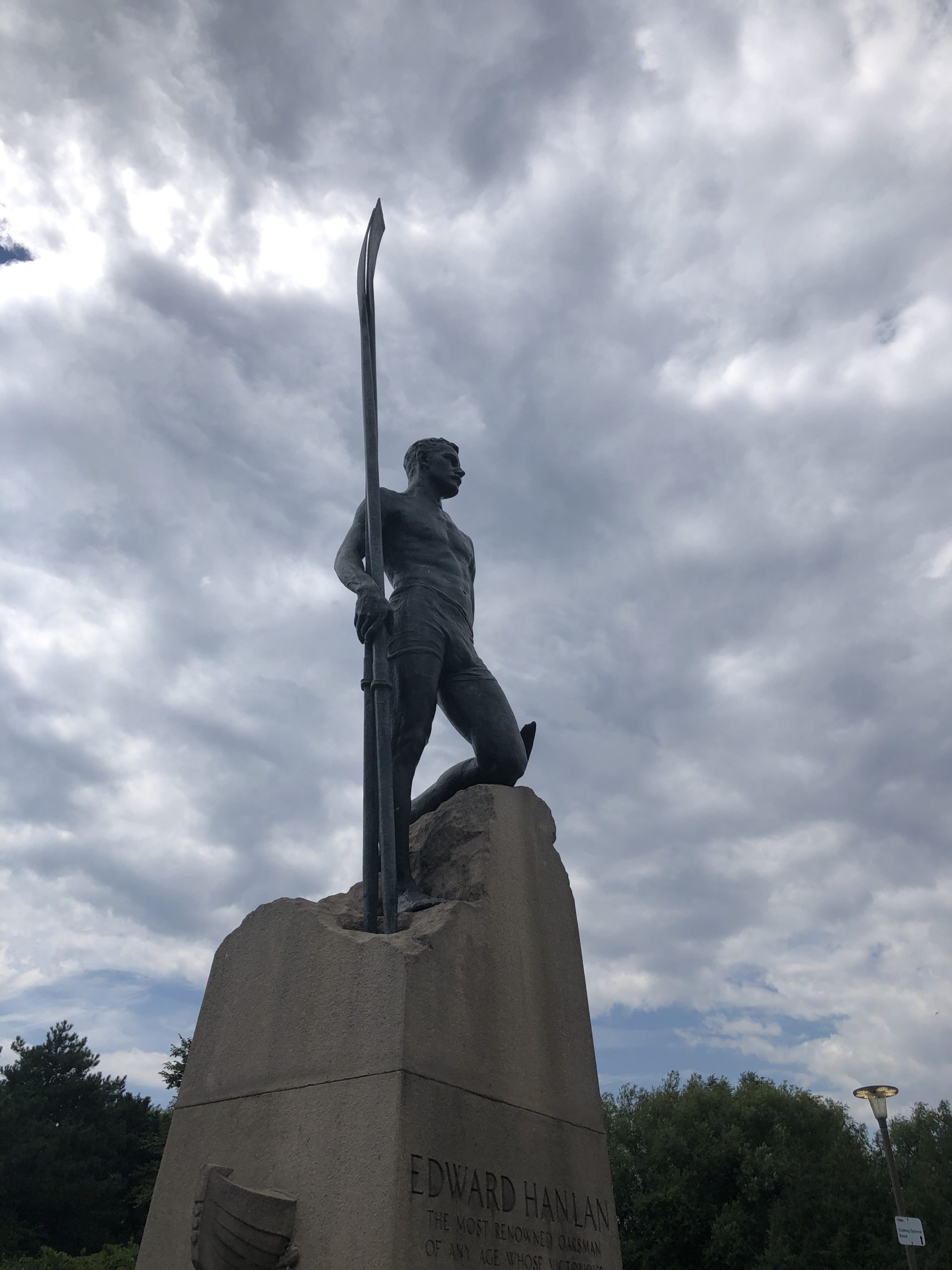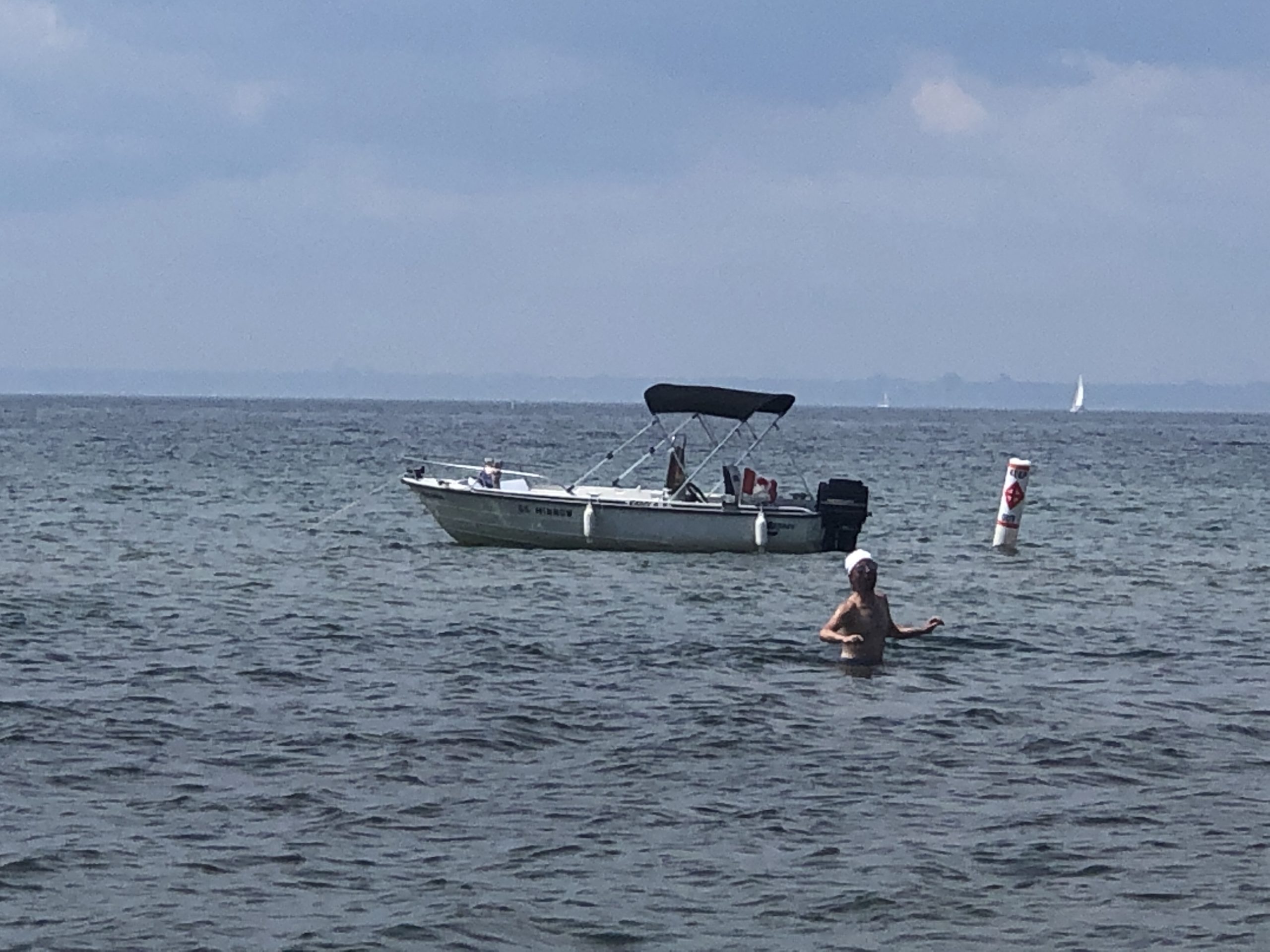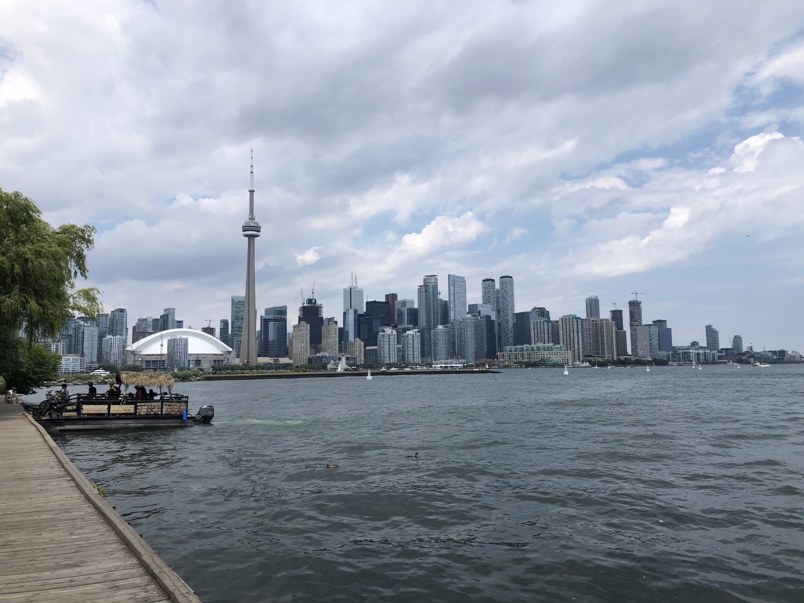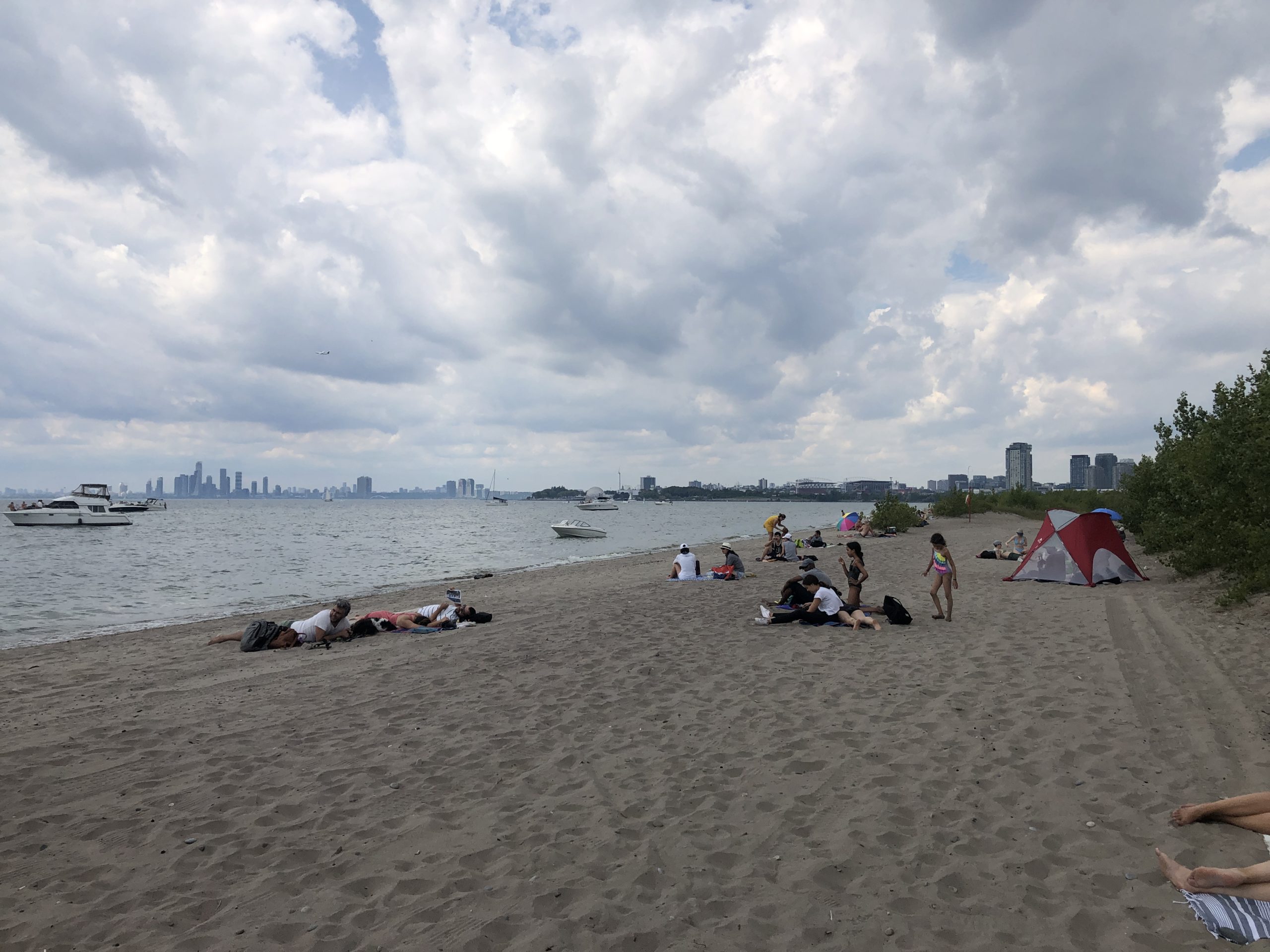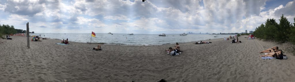 Am heutigen Gemeindefeiertag (Civic Holiday) haben wir uns auf nach Hanlon’s Point gemacht, einer Landzunge vor Toronto in den Ontario-Sees hineinragend. Es ist schon seltsam genug, dass ein natürlicher See einen Sandstrand hat. Leider war es bei meiner letzten Reise nach Kanada 2019 zu kalt zum Schwimmen, so stand der Strandbesuch diesmal ganz oben auf meiner Liste. Die einfachste Art zum Hanlon’s Point zu gelangen ist die Fähre. Wir sind am frühen Morgen schon los, so konnten wir nach kurzer Wartezeit direkt an Board. Die Menschenmasse sollte erst viel später kommen. Vielleicht würden wir Nick vom Vorabend wieder treffen, vielleicht auch nicht – denn er wollte erst später hin.