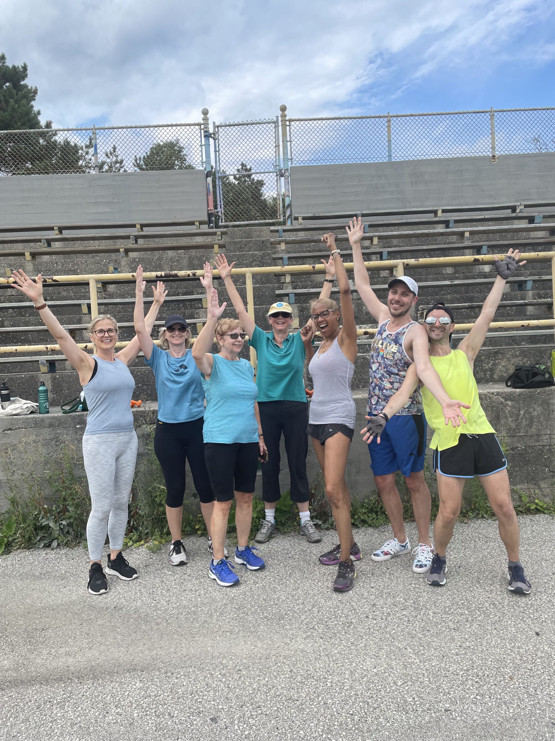 Am späteren Nachmittag gings bei einem Sportkurs unter freiem Himmel schweißtreibend zu. Nach 15 Minuten von zu Hause zu Fuß haben wir uns auf einem Schulsportplatz wiedergefunden. Die großartige Nachbarin meines Gestgebers war ebenfalls spontan mit gekommen. Wir hatten sie erst vor ein paar Tagen kurz getroffen, weil sie einen Zweitschlüssel für seine Wohnung hatte und mir übergab.